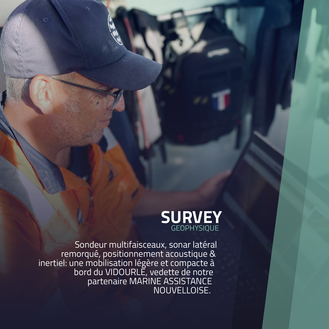 Sondeur multifaisceaux, sonar latéral remorqué, positionnement acoustique & inertiel: une mobilisation légère et compacte à bord du VIDOURLE, vedette de notre partenaire MARINE ASSISTANCE NOUVELLOISE.